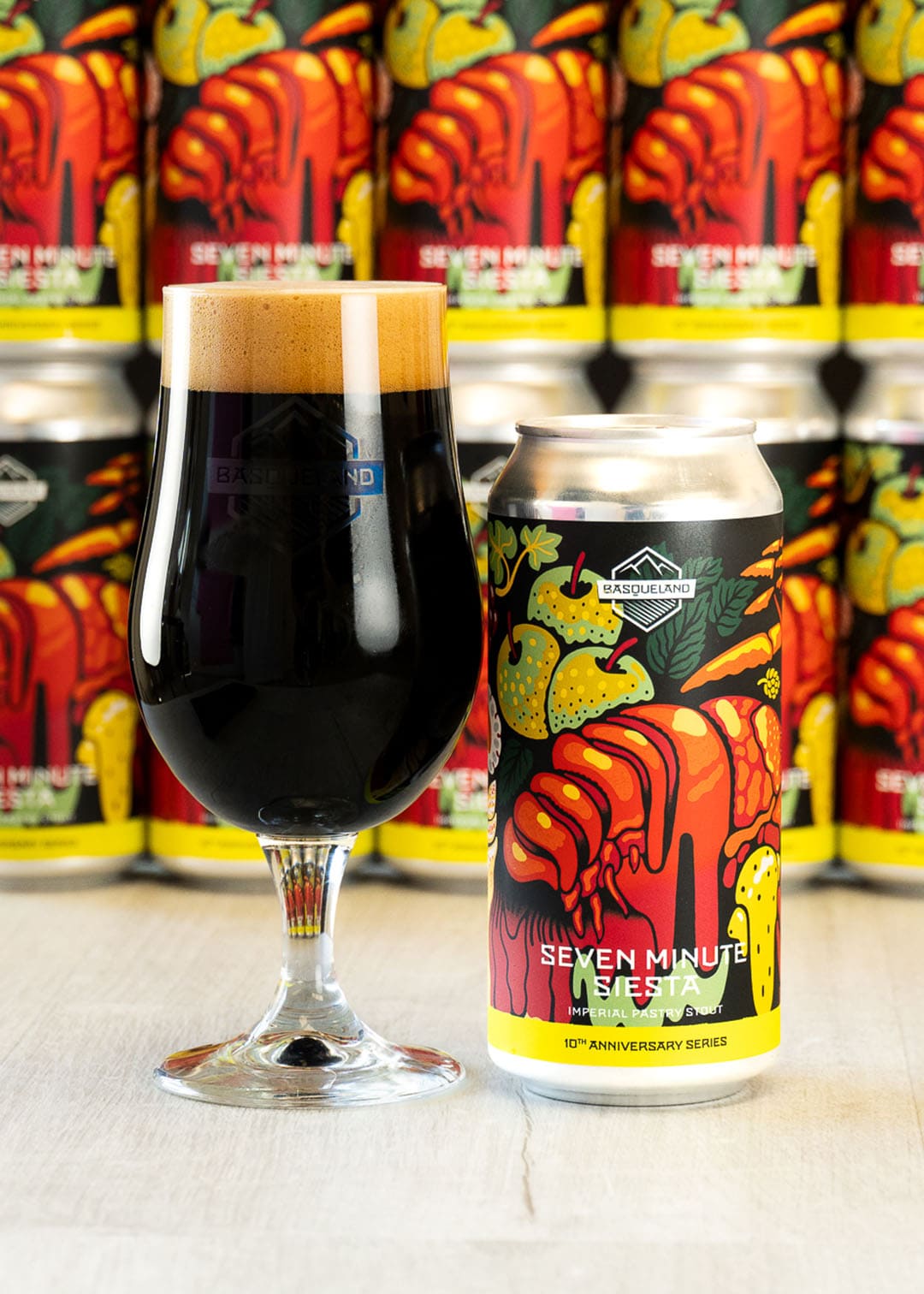 Ditch the hustle and embrace the bliss of Seven Minute Siesta a Salted Caramel Mocha Frappuccino made beer. Pure liquid dessert.