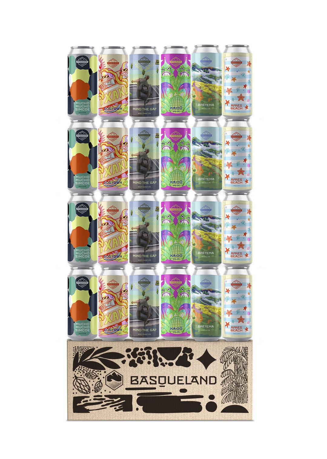 · 4 x APRÉS BEACH, Hazy IPA ~ 5,8% ABV. Dry-Hop: Mosaic, Bru-1, Citra Lupomax.